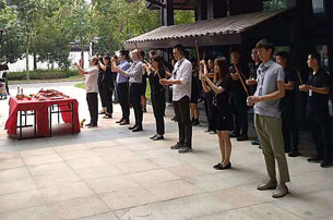 本次营销推广活动开幕拜神祈福仪式严格按照道教拜神祈福程序,选择在吉日吉时进行。拜神祈福仪式开始时,首先摆上供品,然后由老师请神,随后众人拜神祈福上香,再由老师敬神,最后由老师送神。整个拜神祈福仪式井然有序,严肃而庄重。